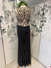 Step into the spotlight with the Dynasty 1012407 Prom Dress, a stunning full sequin black gown that exudes elegance. The illusion neckline and back, beautifully adorned with delicate beading, create a captivating silhouette that will leave a lasting impression.