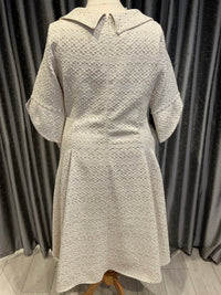 This stunning dress features a beautiful damask detail and is designed with a flattering round neck and elegant 3/4 sleeves with added embellishments.